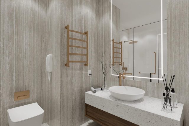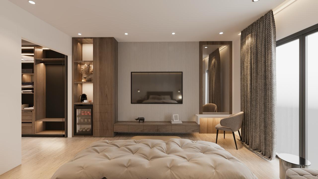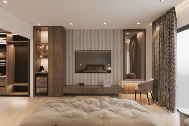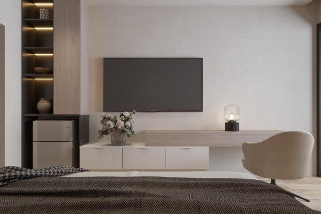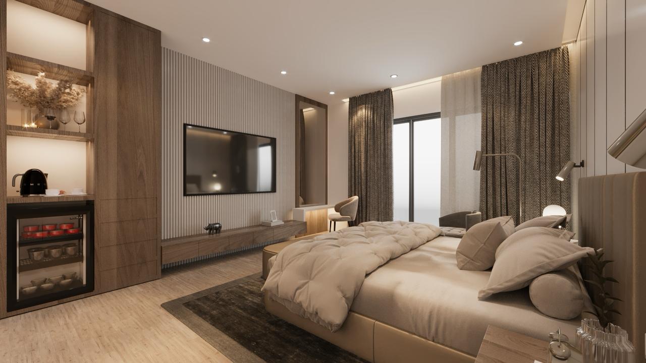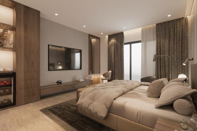 تصميم داخلي على مستوى الفنادق: سرير “بلسفول بيدز” الشهير، أطقم صينيّة ويجد وود، آلة نسبريسو، وبارات مصممة خصيصًا.